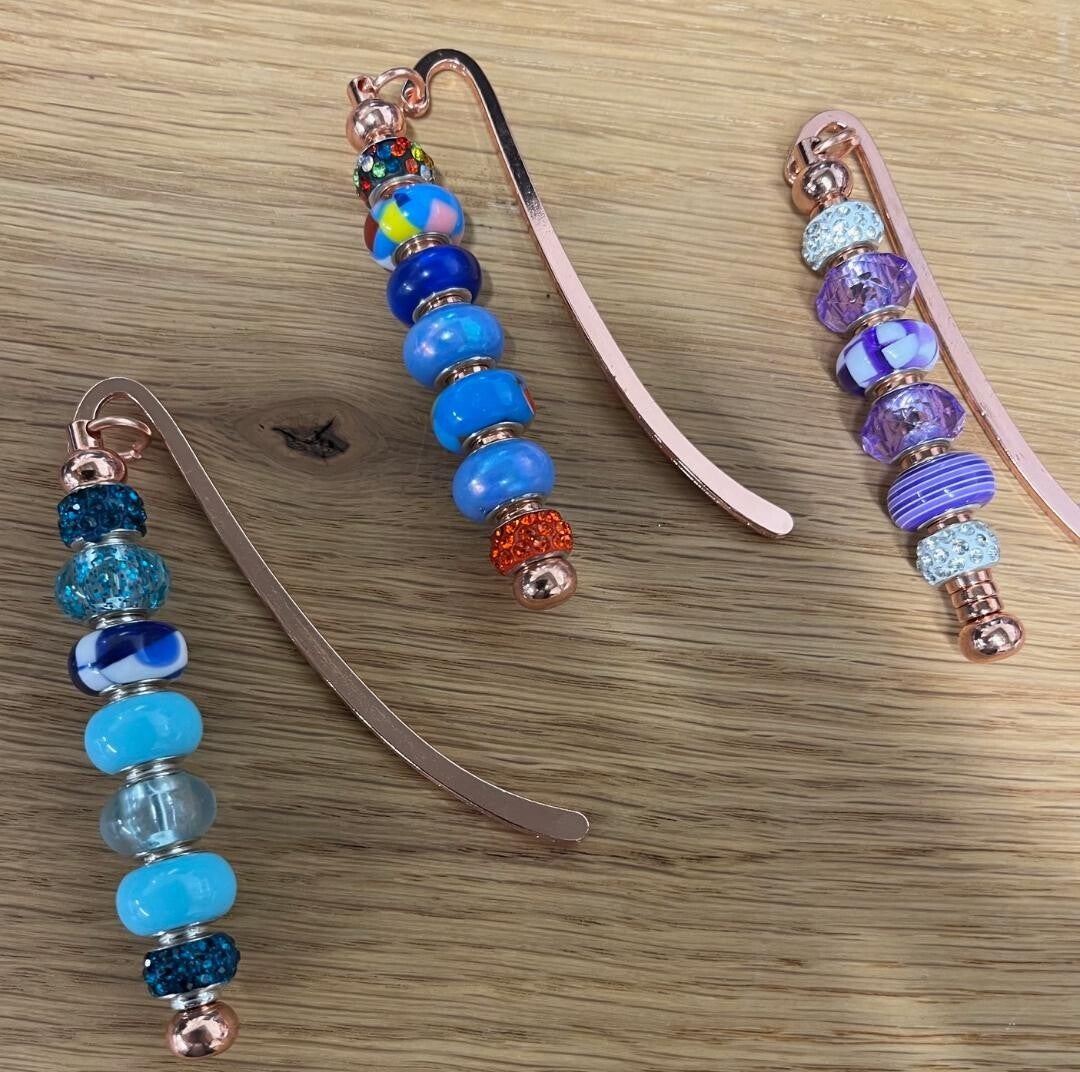 Perfect gift for a Book lover, Beaded Book Marks, in Rose Gold and Gun Metal Black presented in a gift box assorted colours Length of Book Mark 9 cm